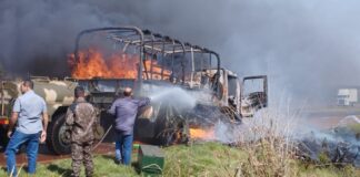 Fogo destrói caminhão do Exército na PR-317