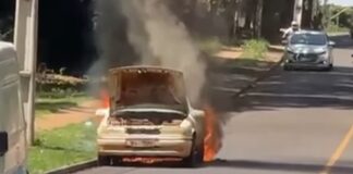 Veículo é consumido pelo fogo no centro de Engenheiro Beltrão